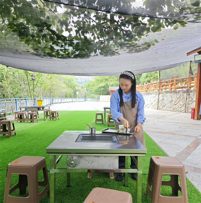 通常里我们是综合部和财务部的事情职员,沐日时代我们摇身一变,化身为烧烤区的服务职员与游船售票员,以满腔的热情与真挚的笑容,服务每一位游客。无论是在一样平常事情的岗位上,照旧在沐日服务的角色中,我们都在岗。